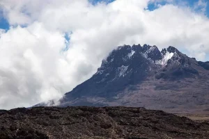Mount Meru is an active stratovolcano located 70 kilometres west of Mount Kilimanjaro in the nation of Tanzania. Much of its bulk lost about 8,000 years ago due to an eastward volcanic blast. Mount Meru most recently had a minor eruption in 1910. The several small cones and craters are seen in the vicinity probably reflect numerous episodes of volcanic activity. Mount Meru is the best for acclimatization before Mount Kilimanjaro climbing; The Mountain is the third highest peak in Africa and is the second highest mountain in Tanzania at 4,568m.