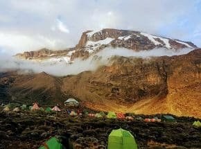 We continue up to the Barafu Camp. You have completed the South Circuit, which offers views of the summit from many different angles. Here we make camp, rest, enjoy dinner, and prepare for the summit day.